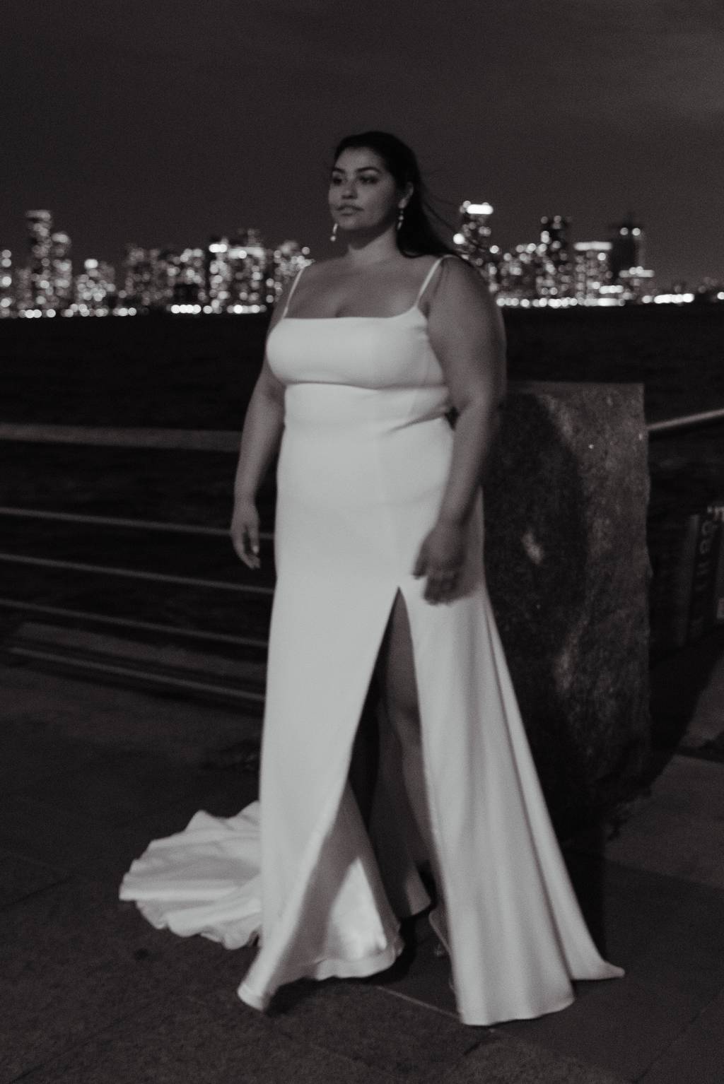 The Emery gown is a 90’s supermodel dream. Cut in our oh so flattering Italian crepe fabric, this understated gown flatters effortlessly letting your curves do the talking. Delicate spaghetti straps and an angular square neckline highlight your décolletage and collarbones, and a cutaway slit offers a perfect opportunity to highlight a fabulous shoe. A low scoop back draws your eye to the waist, and covered buttons to the hem add a perfectly classic finishing touch.