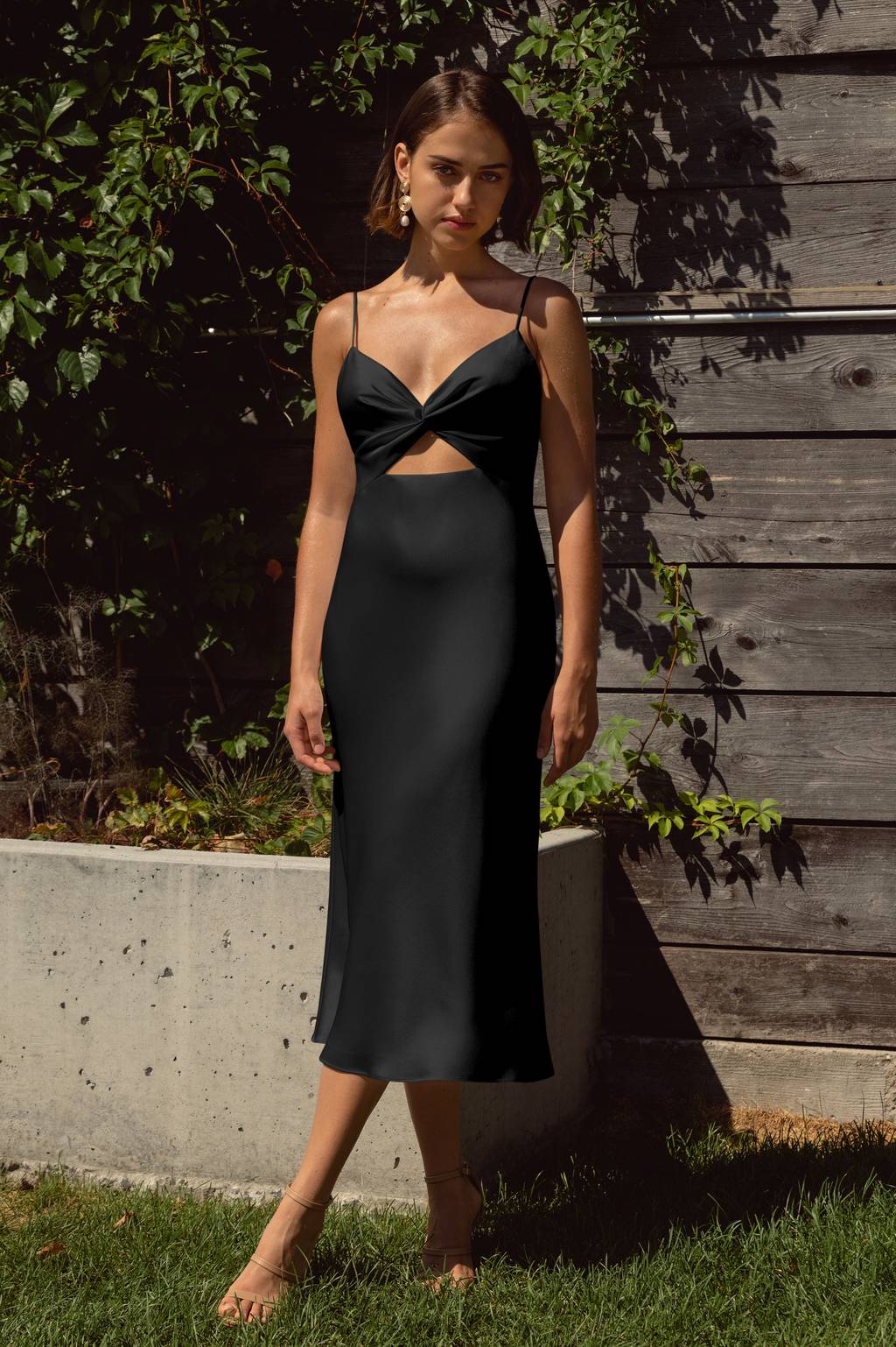 The Adelaide dress puts a flirty spin on a classic silhouette. Featuring twisted bodice, a sultry cutout and a flattering bias cut skirt, this modern slip dress is sure to make a statement!