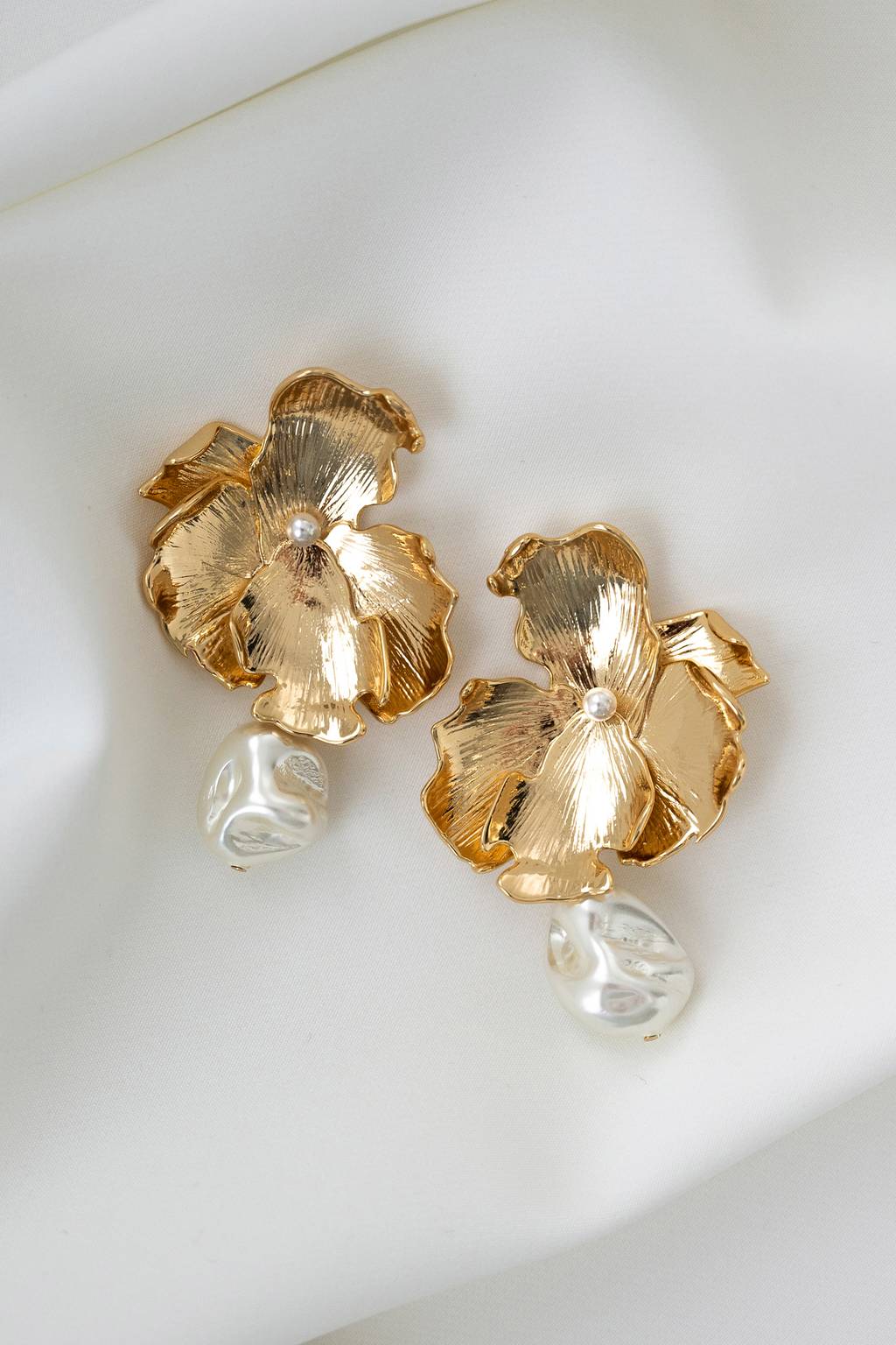 Our Selah earrings feature a glistening pearl that dangles effortlessly from an oversized brass wildflower for an organically beautiful statement. View online now.