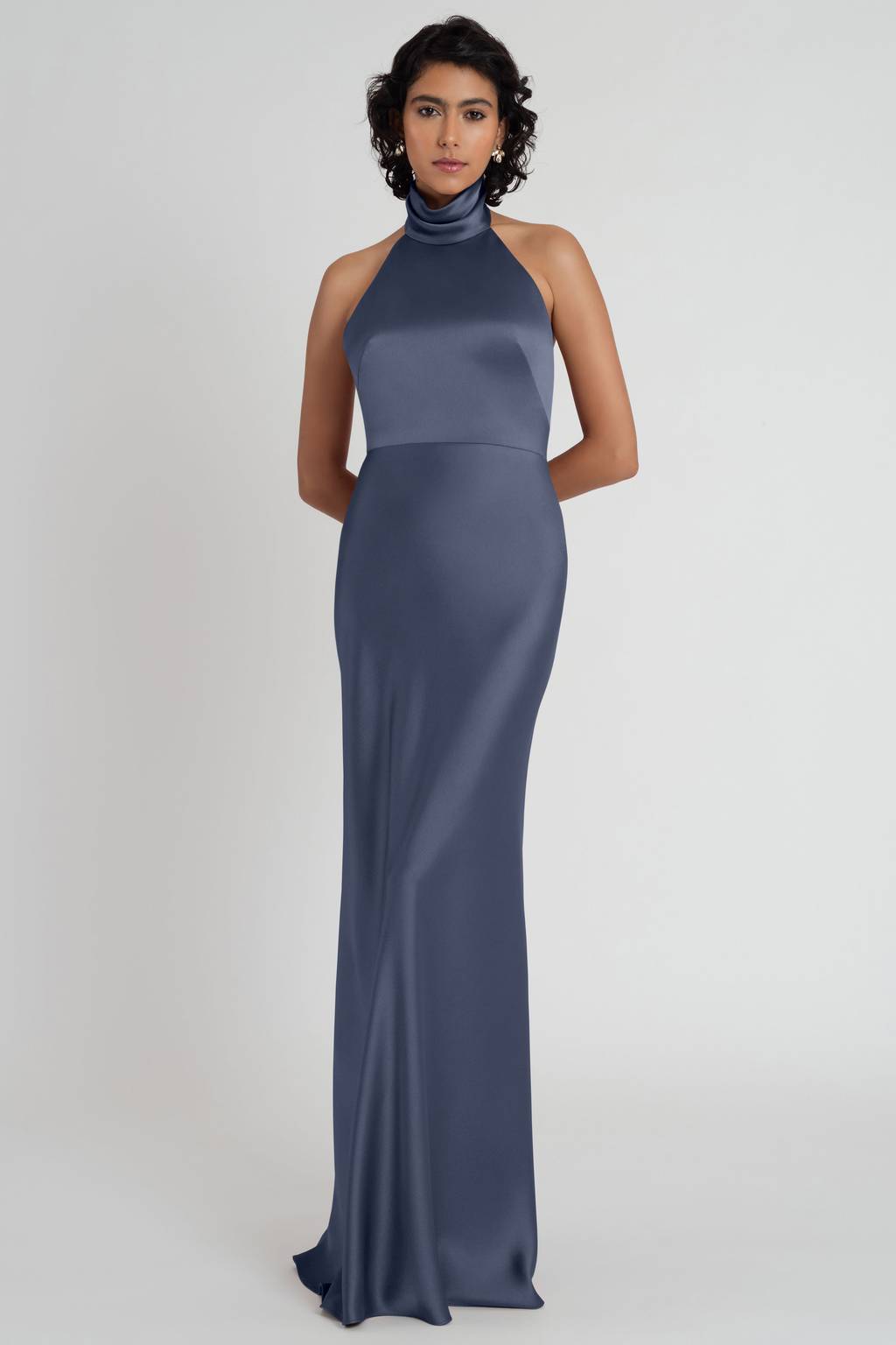 The Nicole luxe satin halter dress is a stunning choice for any event. Featuring a beautifully draped mock neckline and a slinky bias cut skirt, she’s as timeless as she is modern.