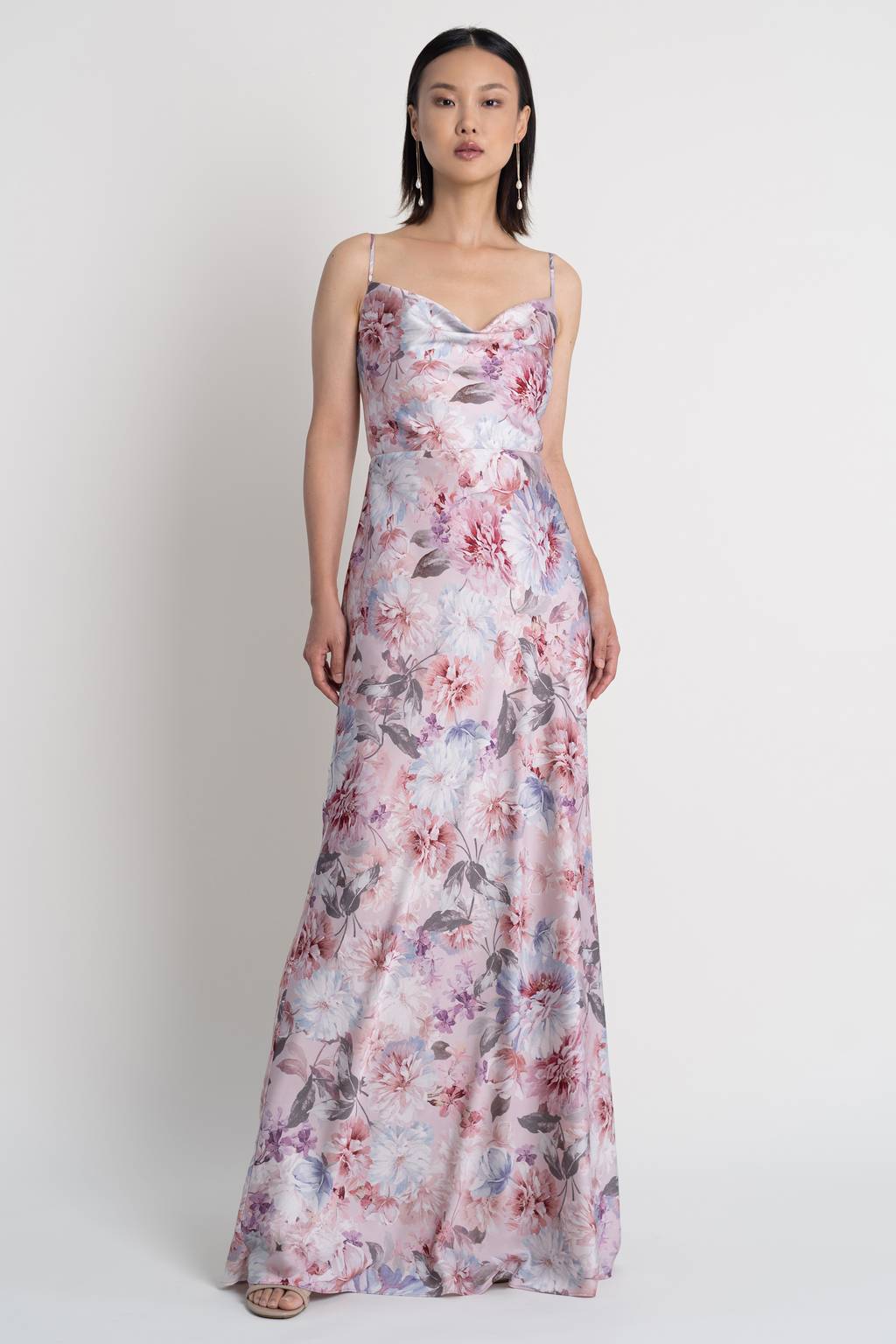 The Jocelyn bridesmaid dress accentuates your curves. Featuring a flattering straight neckline and strappy back cutout detail that gives you flexibility of fit on bust, and a slinky bias cut skirt to show off your hourglass figure. See more of the Jocelyn bridal party gown.