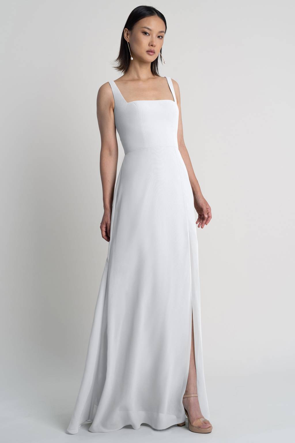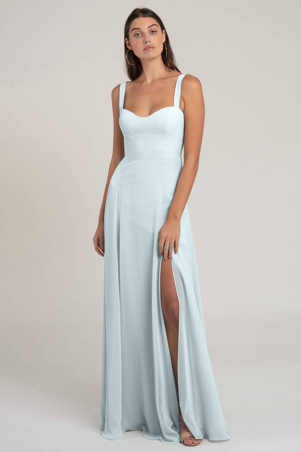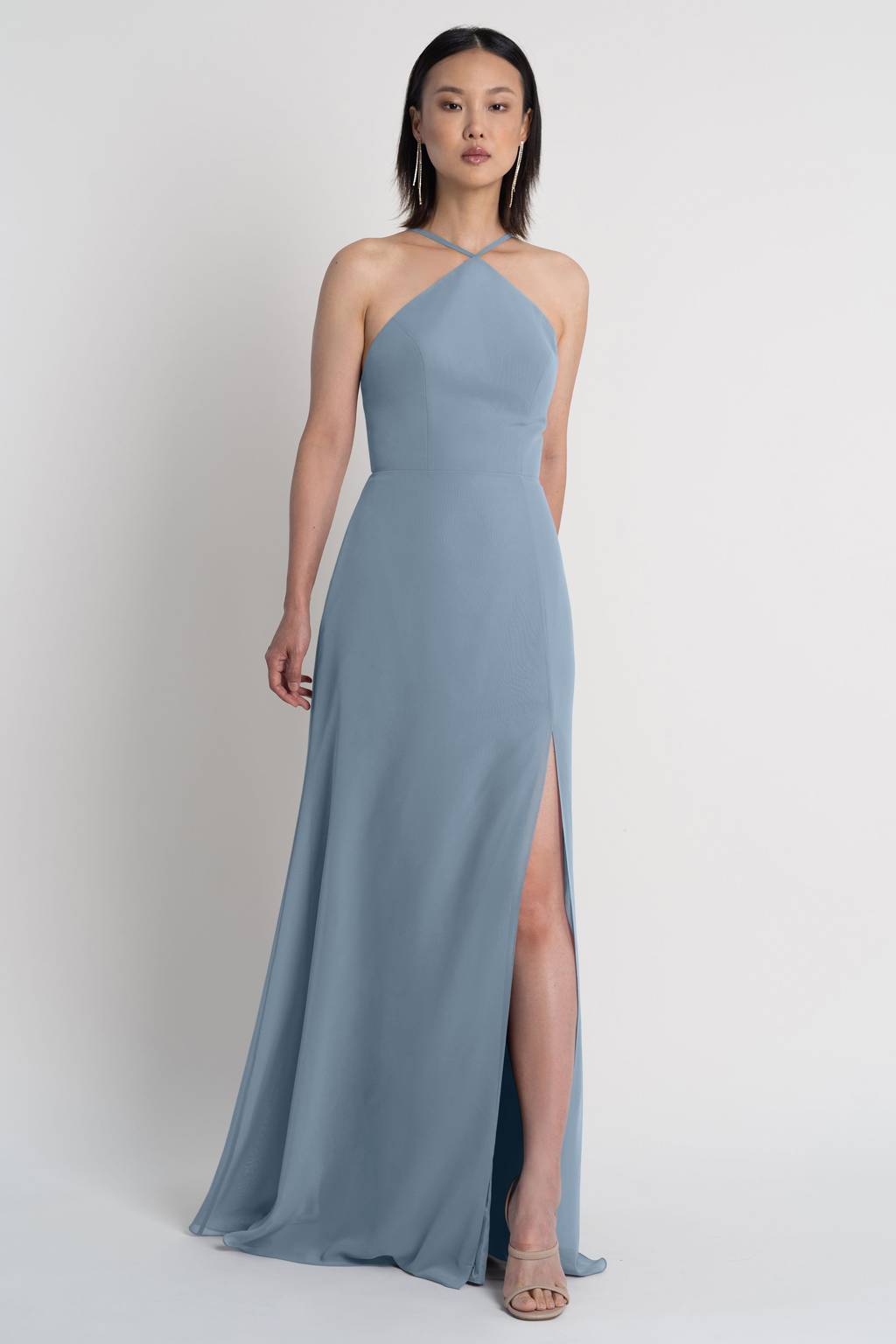 For a brighter and more punchy blue color, Bluebell bridesmaid dresses are the perfect pop of color on your wedding day. Bluebell bridesmaid dresses can be made-to-order in Luxe Chiffon. View Bluebell.Â