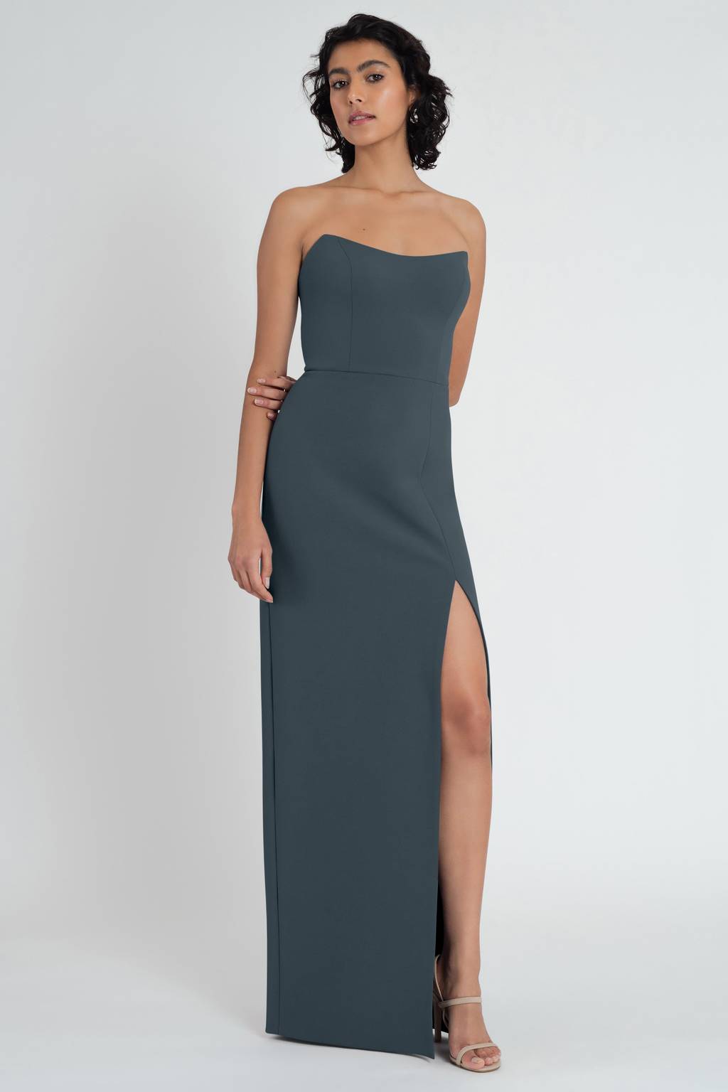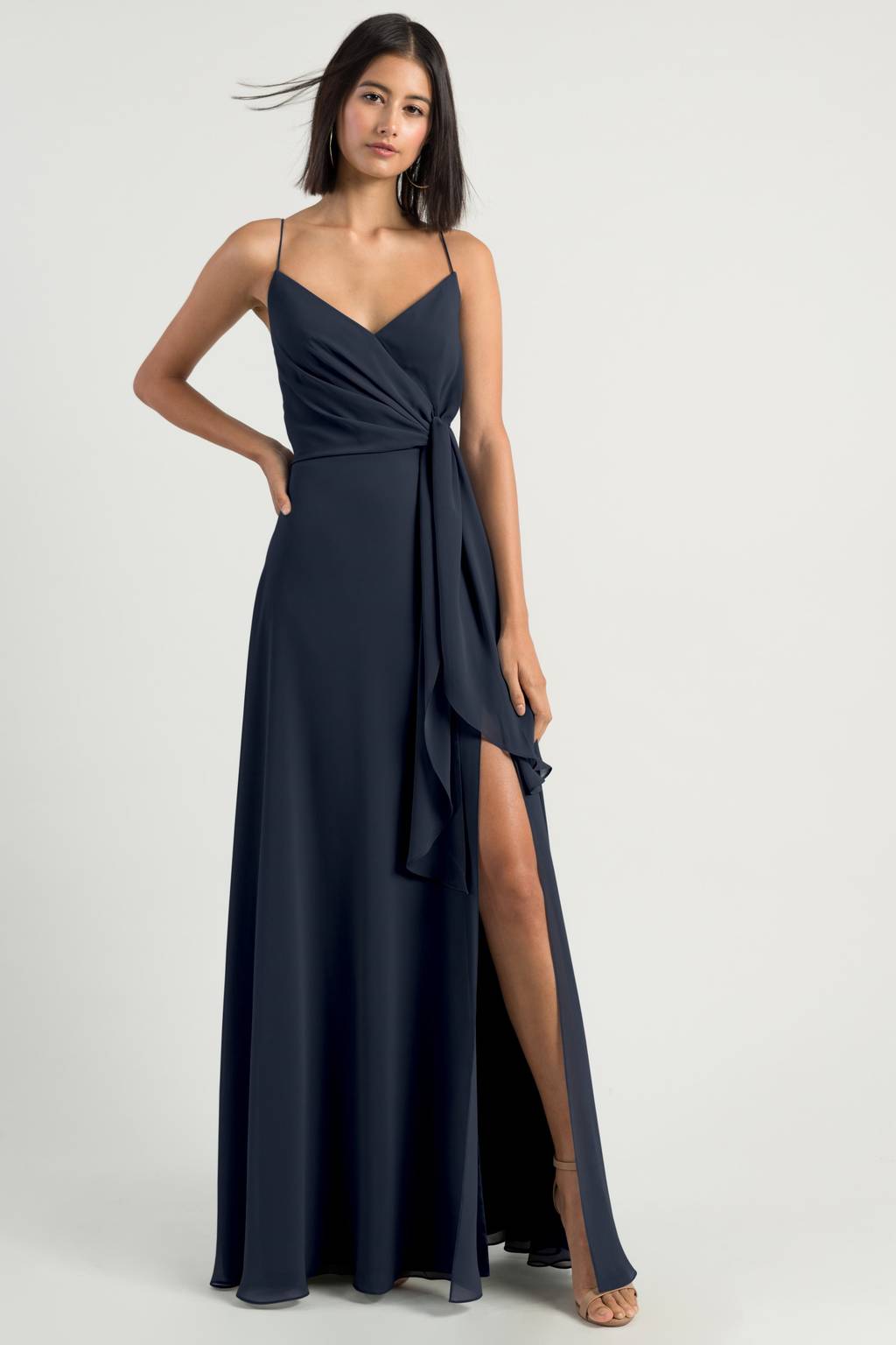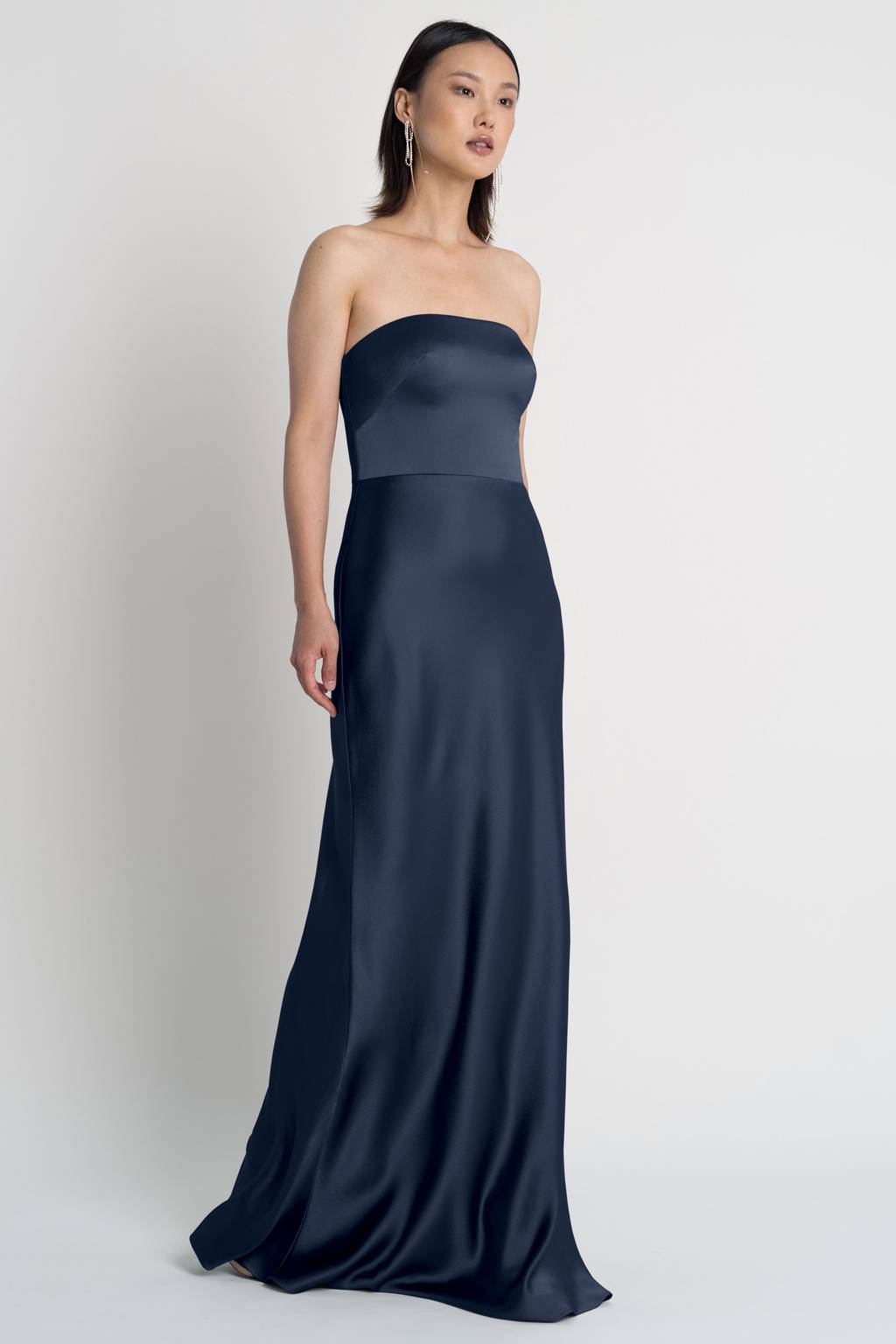 For a deeper and more formal Navy, try Evening Blue. Perfect for black-tie and dressy weddings, this color is a flattering twist on a classic color. View bridesmaid dresses in Evening Blue. Â