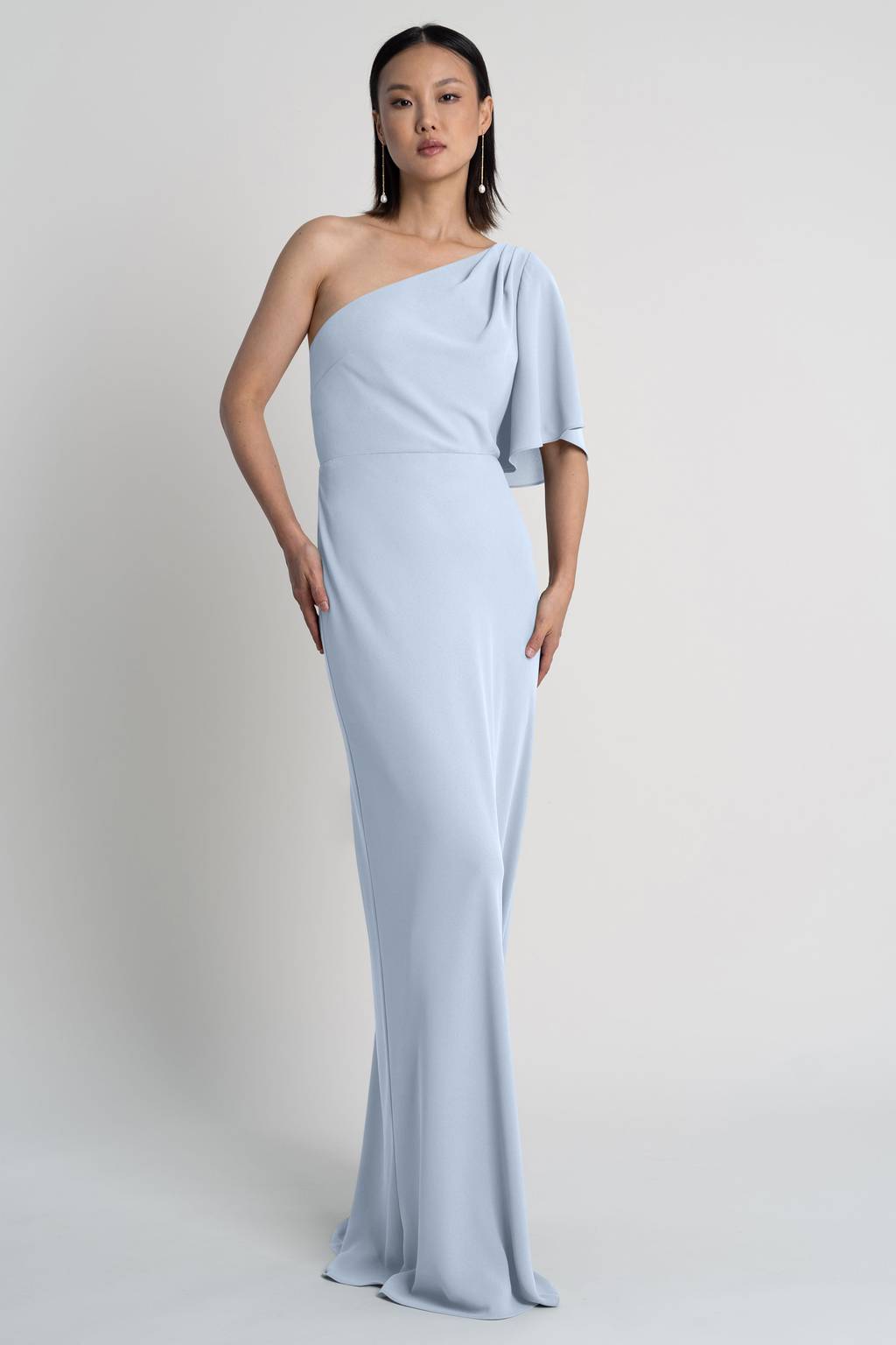 The simplest and chicest something blue? Your bridesmaids! With over 10 shades of blue in the Jenny Yoo bridesmaid dress collection, there's sure to be that perfect hue that you've been dreaming of. From light, to dusty, to shiny, and deep shop bridesmaid dresses in velvet, satin, crepe, and more. Spring weddings are complimented by light pastel hues like Cloud and Whisper Blue. Brides tying the knot in summer months should try punchy colors Bluebell and Mayan Blue. Weddings in the fall look gorgeous outfitted in French Blue, while winter weddings can be elevated with a simple Navy. Scroll below to find the perfect shade for you and if you need it fast, shop ready-to-ship blue bridesmaid dresses.