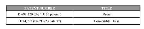 The foregoing trademarks and logos, whether or not they appear with the symbols ® or ™, are trademarks and/or service marks of Jenny Yoo. Trademarks or trade dress include the above names and logos, and other graphics, logos, images, page headers, button icons, scripts, and service names for Jenny Yoo’s products, services, and programs. You may not use any of the "Jenny Yoo" trademarks or trade dress without our prior written permission. Moreover, Jenny Yoo's trademarks, service marks and trade dress may not be used in connection with any product or service (i) that is not authorized by Jenny Yoo in writing; (ii) in any manner that is likely to cause confusion among customers that the source of such product or service is, or is in any way associated with, Jenny Yoo; or (iii) in any manner that disparages or discredits Jenny Yoo. All other trademarks not owned by Jenny Yoo that appear on the Website are the property of their respective owners who may or may not be affiliated with, connected to or sponsored by Jenny Yoo. You may not use any of the "Jenny Yoo" trademarks or trade dress without our prior written permission. By using the Website you are acknowledging that the trademarks, service marks, trade dress and Content on the Website or otherwise belonging to Jenny Yoo are and shall remain, except where owned by a third party, the sole and exclusive property of Jenny Yoo. Nothing on the Website shall be construed as conferring any license or right, whether by implication, estoppel or otherwise, to use any of Jenny Yoo's trademarks, service marks, trade dress or other web-site content. Jenny Yoo is also the owner of the following design patents, pending utility patent applications, and pending trademark applications.